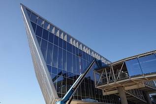 In tal senso, l’estensione dell’edificio ha riguardato, in fase di progettazione definitiva, solo il lato est, con l’aggiunta di un’ala a forma trapezioidale, di circa 130mx25m di profondità, che caratterizza, con geometrie rigorose, lo stile dell’intervento. Si è così realizzato un prolungamento delle sale di imbarco, ponendosi in continuità con quelle esistenti, per un incremento totale della disponibilità degli spazi di complessivi 7.040m2, distribuiti su più livelli e, al contempo, della qualità dei servizi offerti. Particolari accorgimenti sono stati adottati, sia dal punto di vista impiantistico che architettonico, per abbattere i consumi energetici dell’edificio come, ad esempio, la costituzione di una grande “vela”, a sud verso il land-side, con pannelli fotovoltaici integrati nella facciata e la scelta della stratigrafia dei cristalli delle vetrate, che combina vetri a controllo solare e basso emissivi.