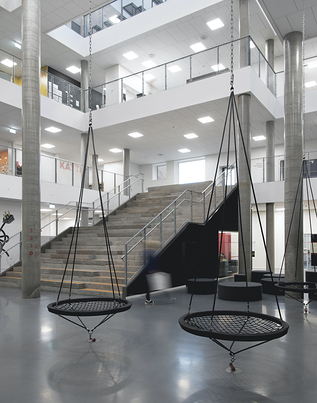 Il movimento e l'attività fisica fanno inevitabilmente rumore, più di tutto in una scuola primaria. Henning Larsen Architects ha creato un buon ambiente acustico per gli oltre 900 studenti utilizzando soluzioni acustiche altamente performanti: tutti i soffitti sono rivestiti con i pannelli in lana di roccia Rockfon, per un totale di 13.700 mq di soluzioni fornite.