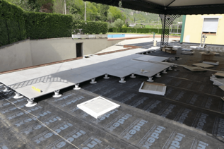 Per ottenere una nuova pavimentazione che fosse al tempo stesso elegante e funzionale, il cliente ha optato per un pavimento sopraelevato da esterno con piastre in gres porcellanato di 2 cm di spessore, 60x60 cm, posato sui supporti KING autolivellanti.