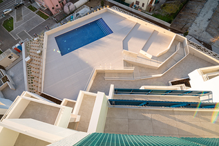 Con un impiego di più di 20.000 supporti i progettisti hanno potuto apprezzare la grande flessibilità che caratterizza il sistema Impertek, ideale sia per pavimenti tile che per il decking. Sono stati posati diversi materiali nei vari ambiti dell’edificio: per le terrazze private degli appartamenti e delle parti comuni sono state scelte delle piastrelle in ceramica, mentre per il solarium e la zona piscina si è preferito utilizzare un decking in grado di valorizzare tutta l’ampia superficie dedicata alla zona relax. La famiglia Balance fa parte di Pedestal Line, un sistema completamente modulare di supporti e accessori per pavimenti flottanti, capace di evolversi in base alle esigenze di progettazione, di semplificare acquisto e stoccaggio dei prodotti e di adattarsi alle problematiche della posa direttamente in cantiere. Pedestal Line si arricchisce con il recente lancio di Balance Pro, il prodotto più versatile e completo sul mercato. Il rivoluzionario sistema “All in one” è in grado di soddisfare ogni esigenza di posa con 14 referenze, di coprire altezze da 25 a 1025 mm, di regolare automaticamente la pendenza e di settare la testa dall’altro grazie a Topkey.