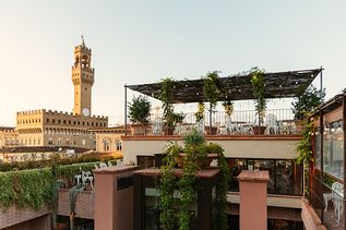 Il palazzo di 5 piani, realizzato nel 1892 su progetto dell’architetto Giuseppe Boccini, sorge a 200 metri da Ponte Vecchio, in pieno centro storico, dove occupa un intero isolato. La ristrutturazione dell’immobile, eseguita su progetto dello studio di architettura Pucci di Firenze che si è occupato anche della direzione lavori, ha trasformato l’immobile in una residenza turistica di alto livello con 38 camere dal design unico e contemporaneo. Al 5° piano del rinato edificio si trova una terrazza esclusiva di 400 mq, che ospita Angel Roofbar&Restaurant, con una vista a 360° sulla città e sui suoi monumenti più caratteristici.