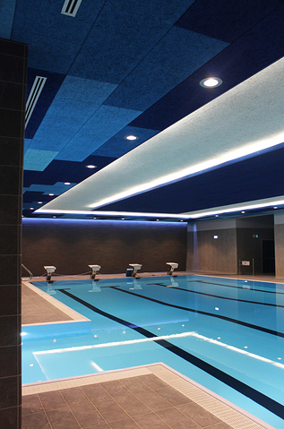 Una nuova piscina in centro a Milano diventa l’occasione per riproporre sul soffitto il movimento visivo dell’acqua e i suoi colori, grazie a pannelli fonoassorbenti dalle grandi caratteristiche prestazionali.