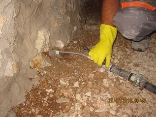 Trattandosi di murature con spessori variabili da 50 a 85 cm, sono stati installati diatoni GBOS 16-40 P di diverse lunghezze in perfori del diametro di 40 mm, non passanti.