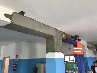 Lo studio della struttura ha permesso di verificare le dimensioni degli elementi strutturali e determinare le armature necessarie da installare. Per l’adeguamento alle norme vigenti antisismiche della struttura scolastica è stato quindi necessario un intervento di adeguamento strutturale che avrebbe garantito all’istituto una migliore risposta alle azioni sismiche del terreno: i lavori, effettuati con tecniche poco invasive che non hanno alterato né la massa né la rigidezza degli elementi strutturali, hanno visto l’applicazione di RureGold®, prodotto da Ruredil, con fibre di polimeri e malte rinforzate che aumentano notevolmentela resistenza delle strutture con la realizzazione di placcaggi con tessuti bidirezionali in PBO. Le analisi strutturali hanno dato modo di verificare che la maggiore carenza nei confronti della sicurezza strutturale è data dall’acciaio presente, tanto nei pilastri quanto nelle travi: si sono quindi individuati gli elementi strutturali che necessitavano di rinforzo e si è determinata, in via quantitativa, la carenza in termini di capacità dell’elemento.
